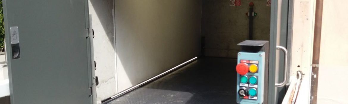 Montauto idraulico con chiamata, rimando, radiocomando. Gestione porte con motorizzazione ad ogni piano. Gestione fotocellule controllo veicolo. Gestione semafori per ingresso e uscita veicolo. Destinazione: Milano Navigli